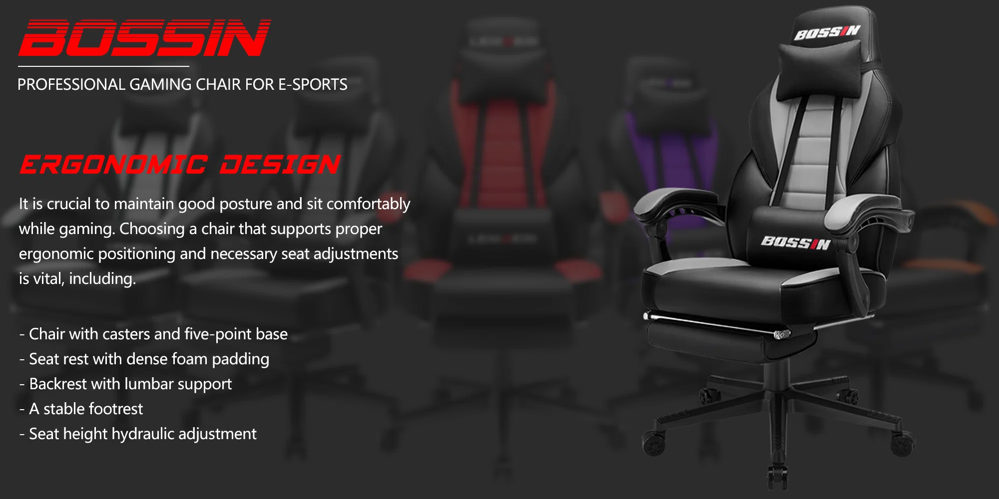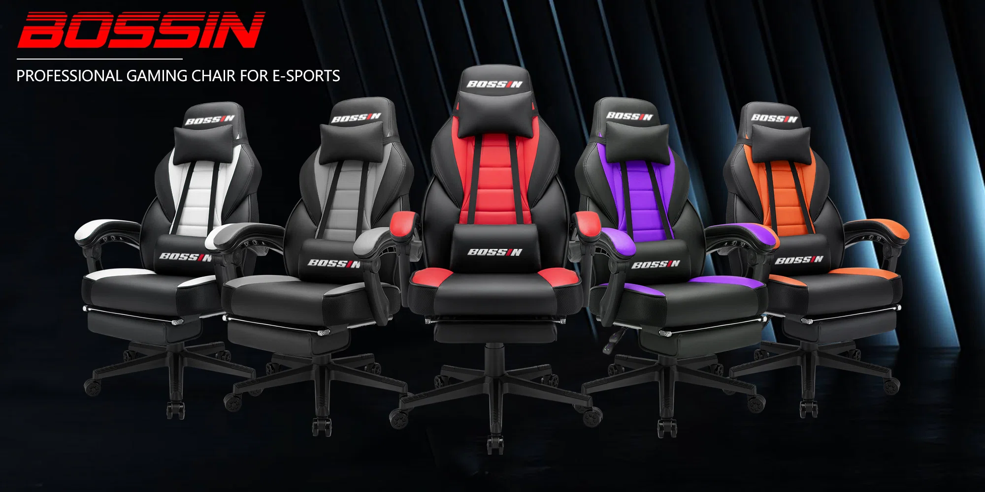 BOSSIN Gaming Chairs with Footrest, Ergonomic Computer Game Chairs with Lumbar Support