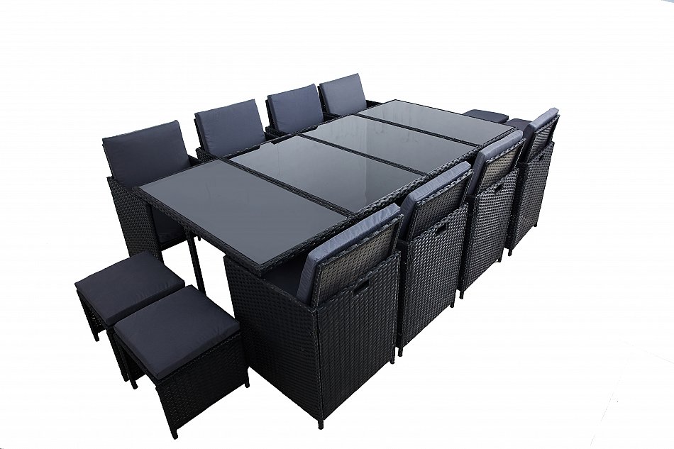 Cet ensemble de mobilier de salle à manger comprend 8chaises, 4 tabourets et une table avec 4 élégant plateau en verre, et il offre suffisamment d'espace pour toute la famille. Le poly rotin tissé est un matériau durable et résistant ainsi il est donc parfait pour la fabrication de meubles de jardin. La finition premium de cet ensemble assure une utilisation durable et satisfaisante!